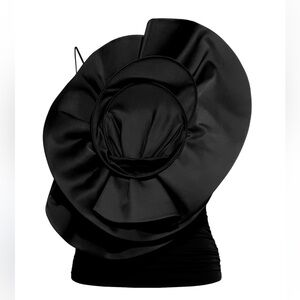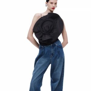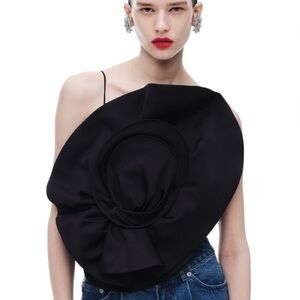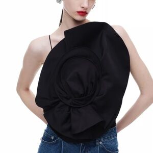 NWT MAGDA BUTRYM H&M GATHERED floral CAMISOLE TOP WITH ROSE APPLIQUÉ BLACK
