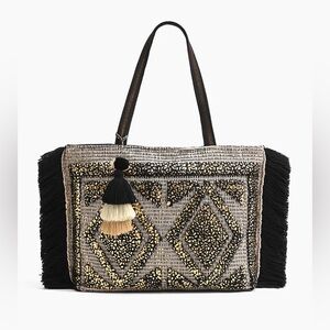 NWT MAGID woven natural tote with Gold metallic imprint & detail
