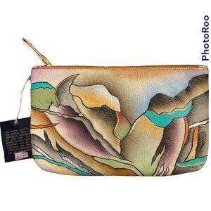 NWT MAGNIFIQUE LEATHER COSMETIC CASE CLUTCH ABSTRACT PRINT HAND PAINTED
