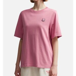 NWT MAISON KITSUNÉ BOLD FOX HEAD PATCH COMFORT TEE SHIRT Rosebud Pink S