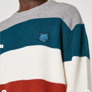 NWT MAISON KITSUNE Bold Fox Head Patch Wool-Blend Ribbed Jumper, Multico M