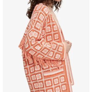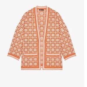 NWT MAJE Mathiou Crocheted Cotton Cardigan Sweater Orange S