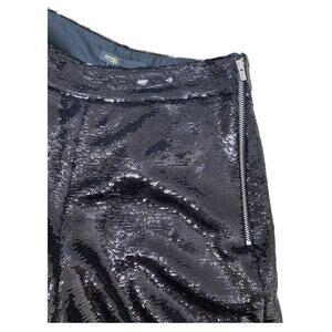 Details: High rise, wide leg, cropped, side zipper closure, sequin embellishments throughout, structured waistband, darts at back, viscose spandex blend, designer