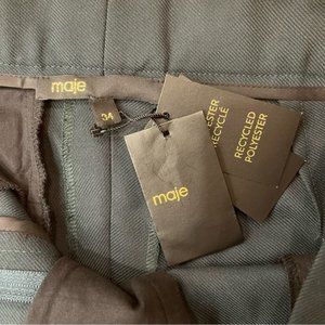 NWT* MAJE 'Pila' Straight Leg Suit Pants in Dark Green Size 34 Trousers Pleated