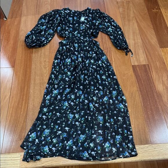 NWT MAJE Risof Maxi Cutout Elegant Black Floral Women's Dress size 38