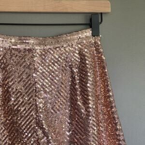 NWT MAJE Sequin Shorts In Metal Pink Size XS Rose Gold Flouncy Dress Shorts Chic
