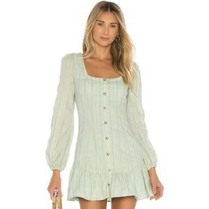 NWT MAJORELLE Malakai Mini Dress in Jade Green Cottagecore Drop Waist Size Large