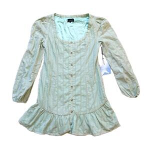 Majorelle Malakai mini dress. Jade green. Embroidered. Button down front, square neckline. Ruffle hem. Boho/cottagecore. Drop waist. New with tags, no flaws!