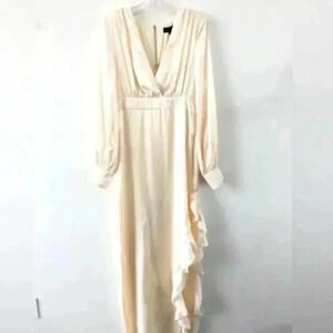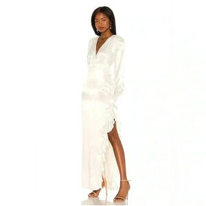 NWT MAJORELLE x Revolve White Pearl Glossy Satin High Slit Ruffle Gown Dress XS
