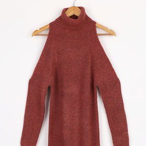 NWT MAKE A MATCH BRICK RED COLD SHOULDER SWEATER DRESS
