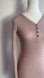 Fitted, knee-length dress in ribbed jersey. V-neck, button placket, and long sleeves.