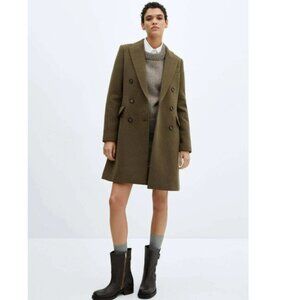 NWT MANGO DALI Double-Breasted Wool Coat, Khaki (Sage toned) – Size Small