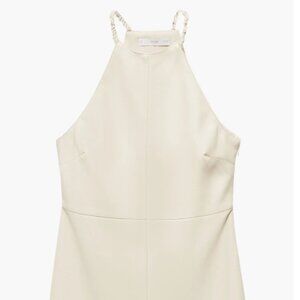 NWT MANGO FAUX LEATHER MINI DRESS LIGHT BEIGE