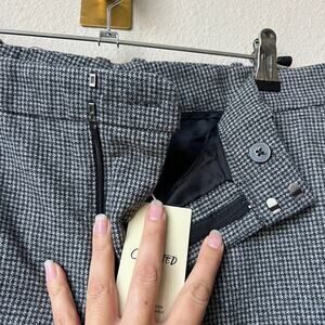 tags: wool trousers, workwear, office pants, office wear, business pants, business wear, houndstooth, check print, wool blend work pants, gray work pants, classic trousers, cropped trousers