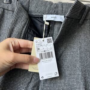 NEW with tags Mango gray check print slim fit wool suit trousers. Wool mix fabrication. Slim fit. Cropped design. Two side pockets. Belt loops. Concealed button, hook and zip fastening. Size 38 = US 6 - 15" waist; 11.5" rise; 29" inseam.