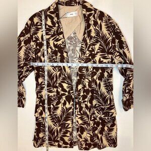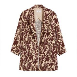 NWT MANGO LINEN Blend Tropical Print Notch Collar Blazer Front Flap Pockets XS