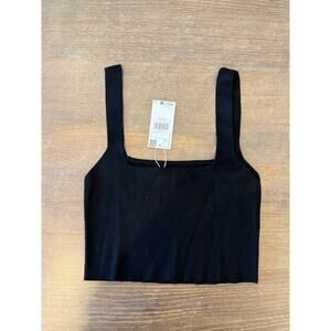 NWT MANGO MNG Black Square Neck Crop Shirt Top Women size L NEW