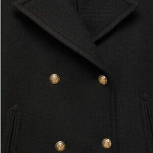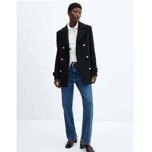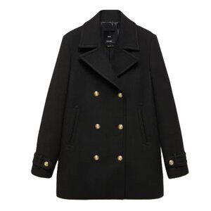 NWT - MANGO Proa Wool Coat with Jewel Buttons, Black – Size Small