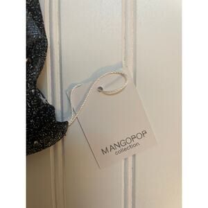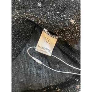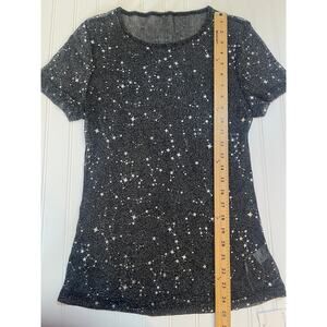 NWT MANGOPOP Collection SHEER Black Silver Stars Top Short Sleeve NYE - Size XL