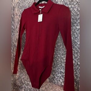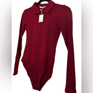 NWT MANGOPOP WOMEN’S LONG SLEEVE BODYSUIT SIZE S BURGUNDY