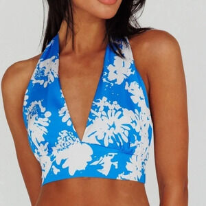 NWT MANILA HALTERNECK CROP TOP BLUE FLORAL