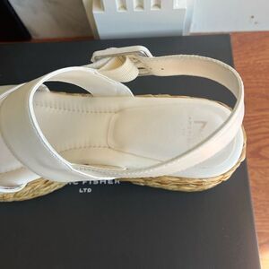 Elevate your summer style with the Marc Fisher Espadrille Sandal in a versatile white ivory hue. Crafted from premium leather, this sandal features a chic wedge heel that offers a comfortable lift, perfect for all-day wear. The adjustable ankle strap with a secure buckle closure ensures a personalized fit, while the platform design provides added comfort. Ideal for casual outings, beach days, or brunch with friends, these sandals are your go-to for any sunny occasion. New with tags, featuring the Patryce platform wedge.