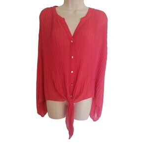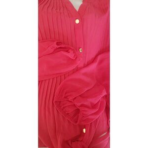 NWT MARC NEW YORK ANDREW MARC VIVA MAGENTA BUTTON FRONT PLEATED BLOUSE SZ LARGE