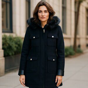 NWT MARC NEW YORK ANDREW MARC WOOL BLEND FAUX FUR COAT BLACK SMALL