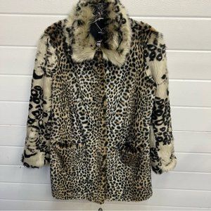 NWT MARCIANO GUESS - WOMENS LEOPARD FAUX FUR COAT