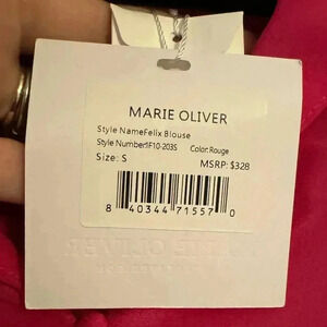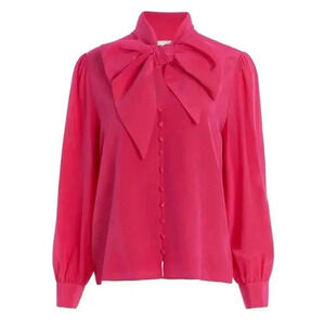 NWT MARIE OLIVER Felix 100% Silk Blouse Rogue, Fuchsia Bow Button down, Sz Small