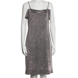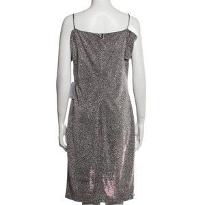 NWT Marina slip dress in metallic pink and silver, iridescent glitter accents. Size Medium. Designer brand sold at Nordstrom. Strapless, but with off the shoulder sleeves and a square neckline. Concealed back zipper closure, falls above the knee. (Shiny, shimmery, holographic) Brand new. The Nordstrom tag is attached, but not the designer price tag. Mob wife, classic, classy, old money