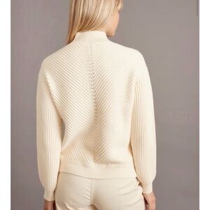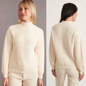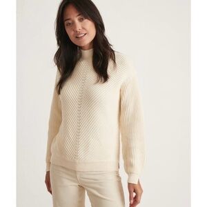 NWT MARINE LAYER Ivory Cotton Merino Wool Chevron Rib Knit Mockneck Sweater S