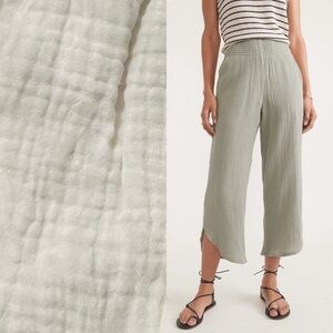 NWT MARINE LAYER Ivory Crinkle Cotton Smocked High Rise Wide Leg Cropped Pant S