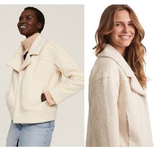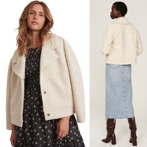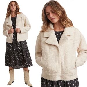 NWT MARINE LAYER Ivory Recycled Sherpa Boxy Cropped Button Up Trucker Jacket L