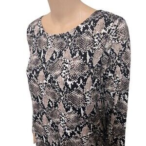 NWT MARIO SERRANI TAN SNAKE SKIN CREW NECK LONG SLEEVE SOFT TUNIC TOP SZ M #D389