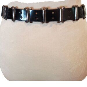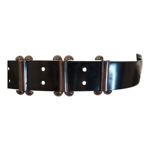 NWT MARTINA MORI OS 33"- 37" Art Ursula Black Patent Genuine Leather Belt w/Metal Accent made in Italy