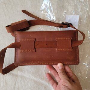 NWT MATTE Auburn Brown Leather Snap Close Belt Bag