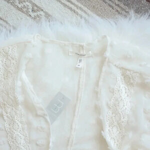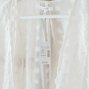 NWT! MAURICES SHEER CREAM WHITE SWISS DOT LACE MESH KIMONO SZ M