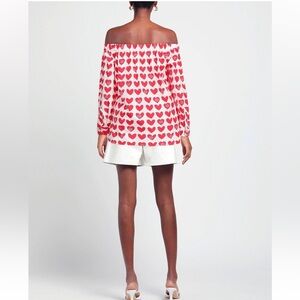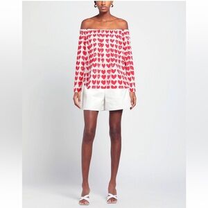 NWT MAX MARA Red Calamo Heart Printed Cotton Off-Shoulder Top