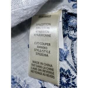 Beautiful embroidery on a white blouse (cotton/rayon blend) with cap sleeves from MAX STUDIO in size large.