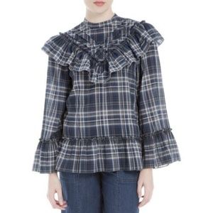 NWT MAX STUDIO Plaid Ruffles TOP medium