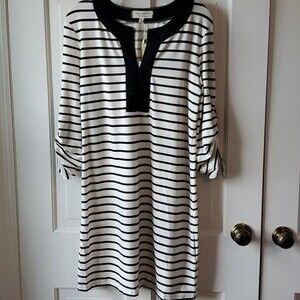NWT MAX STUDIO SHIFT TUNIC DRESS SZ MEDIUM SOFT CREAMY WHITE/BLACK STRIPE