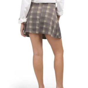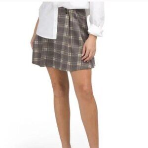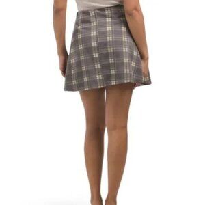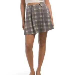 NWT MAZE COLLECTION Grey Multi Plaid Pleated Double Knit Mini Skort Size M