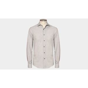 Soft touch Mazzarelli shirt in light grey melange twill flannel fabric made by Albiate. If you're not familiar with Mazzarelli, they are on par with Barba, Finamore, Vanacore, Canali, and Zegna. In my opinion, Maz makes the best collars of all the Italian makers.