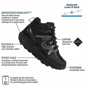 MBT’s patented SensorTechnology — backed by nearly 30 years of physiological research — absorbs shock and helps you land softly on your heel. The natural cushioning supports your feet no matter what the day holds.