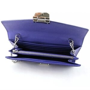 Expertly crafted and designed, the MCM Patricia wallet on chain is a versatile and stylish accessory perfect for any occasion. Made with premium leather and adorned with striking silver hardware, this wallet features a removable chain to easily transition from a wallet to a clutch. Elevate your style with this must-have piece for a flawless finish. In spectrum blue leather, new with tags.