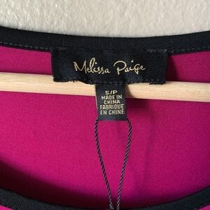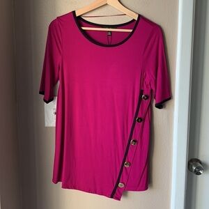 Description: NWT Melissa Paige Pink Asymmetrical Elbow Sleeve Top