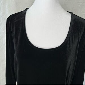 MELISSA PAIGE-BLACK VELVET- PLEATED CHIFFON CUFF-SCOOP NECK- TOP. Size 1X. Asymmetry . New with a tag. Approx measurements laying flat: