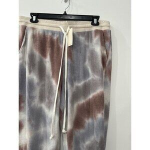 NWT MELLODAY Size 2X Women's Plus Size Tie Dye Thermal Joggers Grey Multi Color