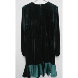 NWT hunter-green velvet dress, Melonie T fit-and-flare dress, plus-size special occasion dress, size 14 holiday velvet dress, ruffle hem green dress, stretch velvet wrap dress, puff-sleeve formal dress, wedding guest outfit, luxurious velvet party dress, holiday fashion dress